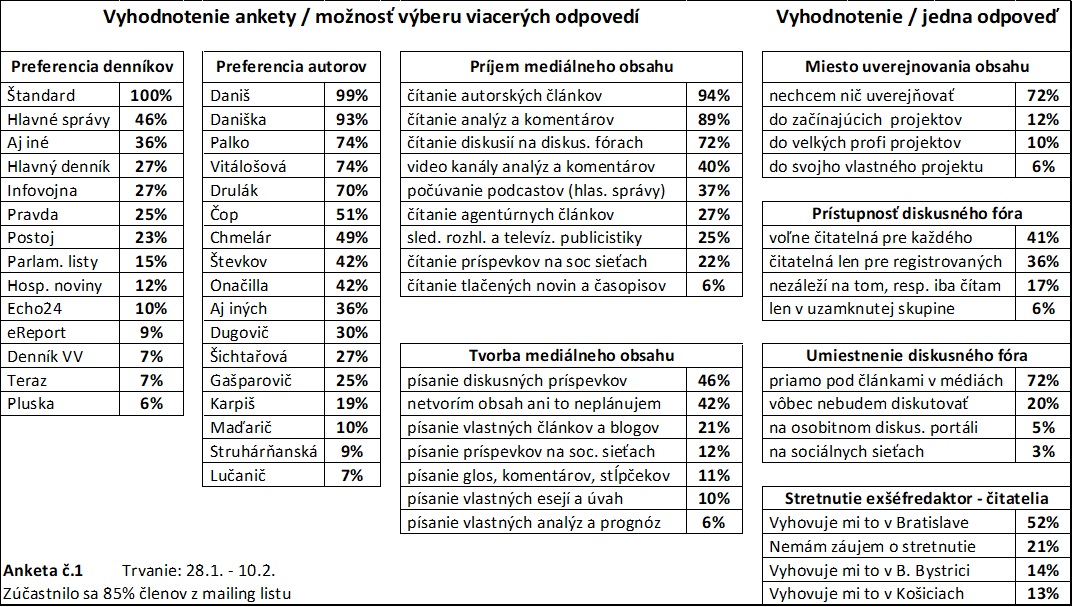 Označte denniky, ktoré pravidelne čítate, vyberte svojich obľúbených autorov, vaše obvyklé mediálne infokanály aj činnosti, ktoré preferujete. Na konci nájdete aj možnosti k navrhovanému stretnutiu.